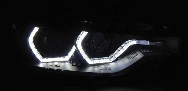 BMW F30/F31 10.2011 - 05.2015 přední světla Angel eyes LED black DRL Světla mají homologaci pro běž