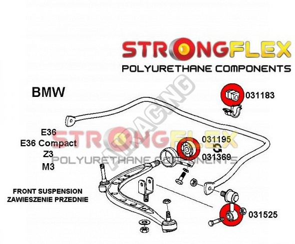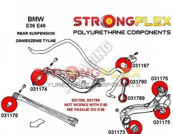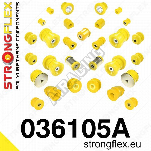 BMW řada 3 (E36) StrongFlex Sport (tvrdost 90ShA) kompletní sestava silentbloků na celé auto obsahuje :