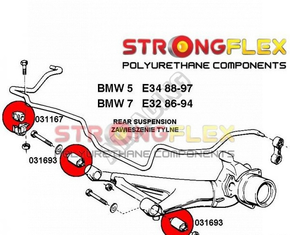 BMW řada 5 (E34) StrongFlex Sport (tvrdost 90ShA) kompletní sestava silentblokůna celé auto obsahuje :