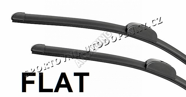Stěrače FLAT SET (sada 2 ks na celé auto). Vysoce kvalitní pružný člen plochého stěrače zajišťuje stejnoměrný tlak grafitového břitu v celé jeho délce, což zamezuje rozmazávání nečistot a vytváření pruhů.