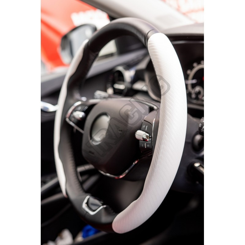 Určeno výhradně pro průměr 36-38 cm. Sportovní provedení - silver karbon. Tyto boční části jednoduše nacvaknete na volant. Pokud váš volant je tenký, kde tyto kryty by mohly prokluzovat nebo špatně držet, musi se zde přidat podlepení viz odkaz níže.