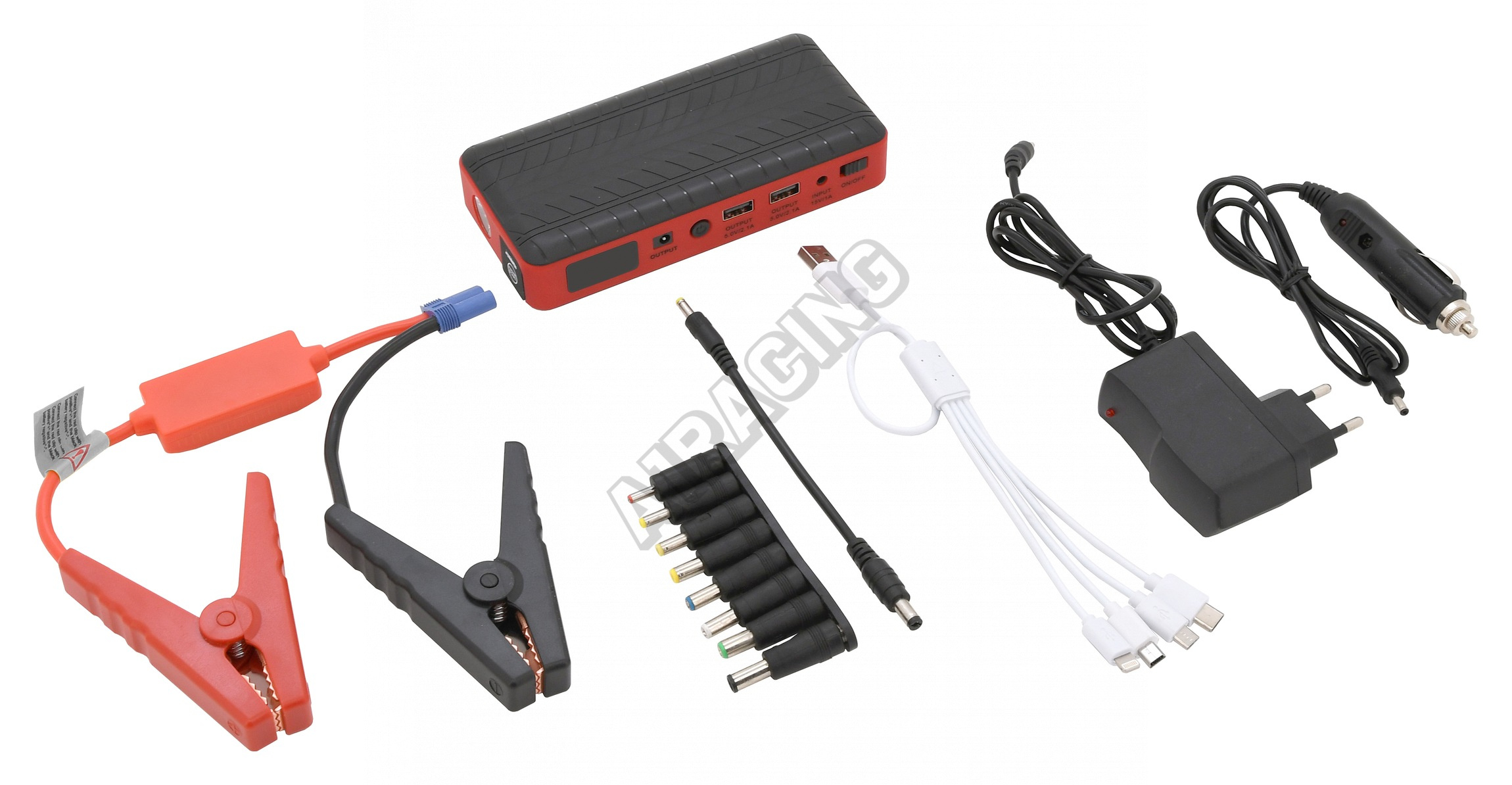 Díky funkci JUMP START umožňuje nastartovat vůz s částečně vybitou baterií. Pomocí klipsů se připojuje přímo na autobaterii startovaného vozidla.