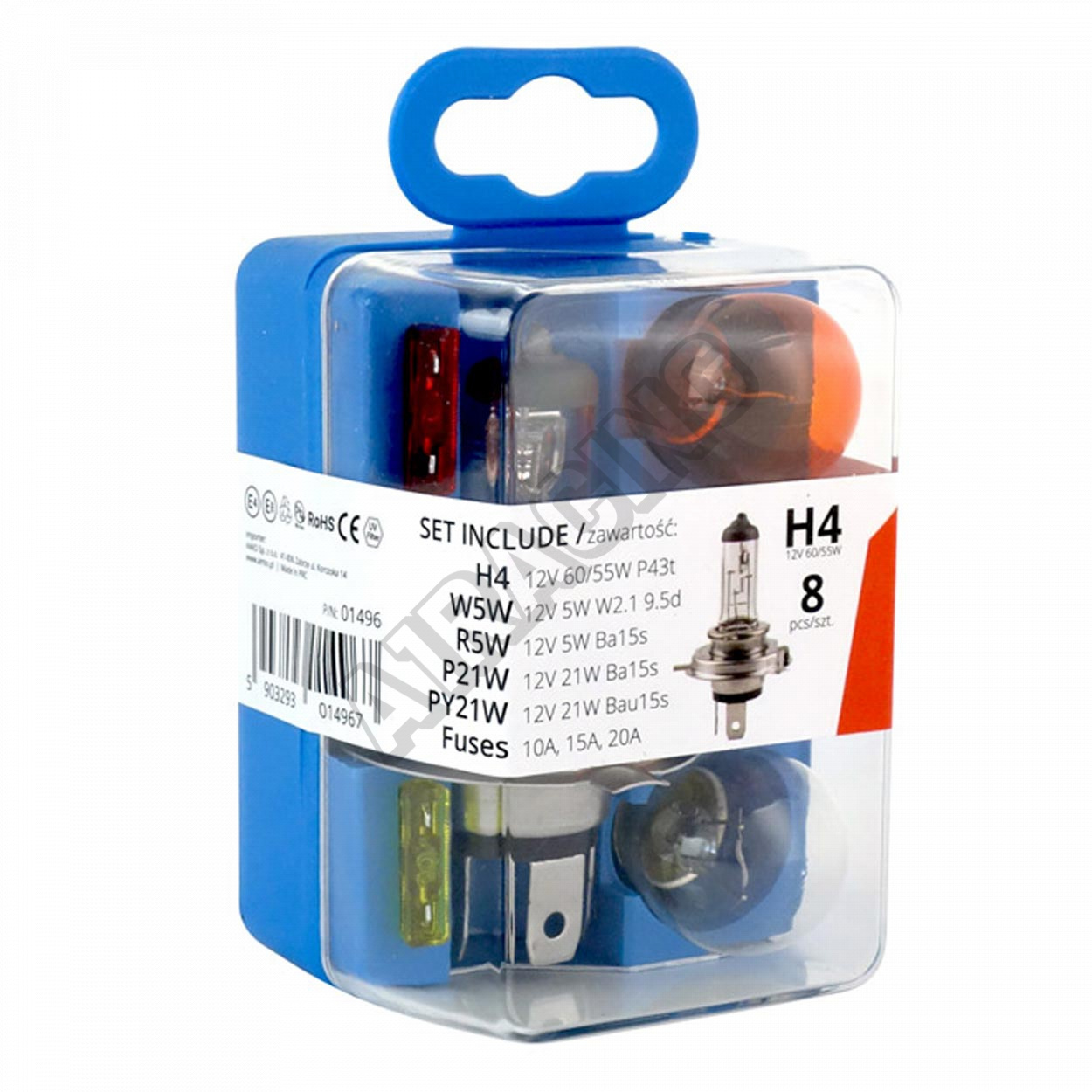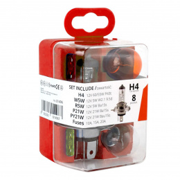Box žárovek vč. pojistek UNI 12V/H4 VERTEX Složení : H4 1 ks P21W 1 ks PY21W 1 ks R5W 1 ks