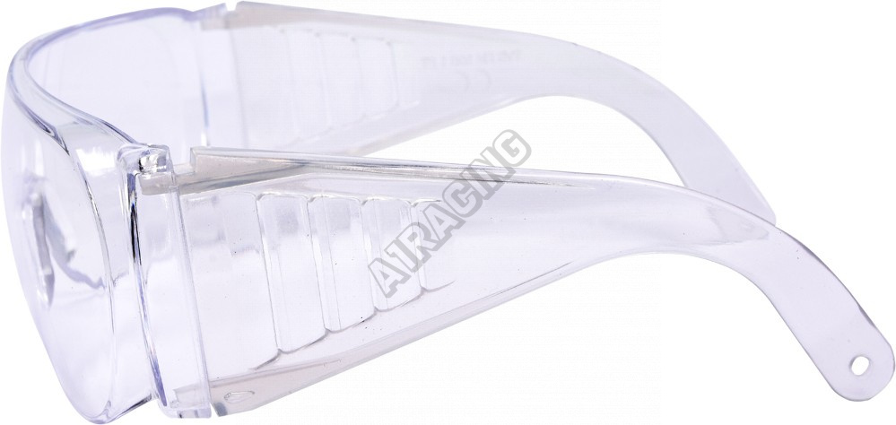 Ochranné brýle z polykarbonátu, s širokými ramínky poskytujícími ochranu i z boku.