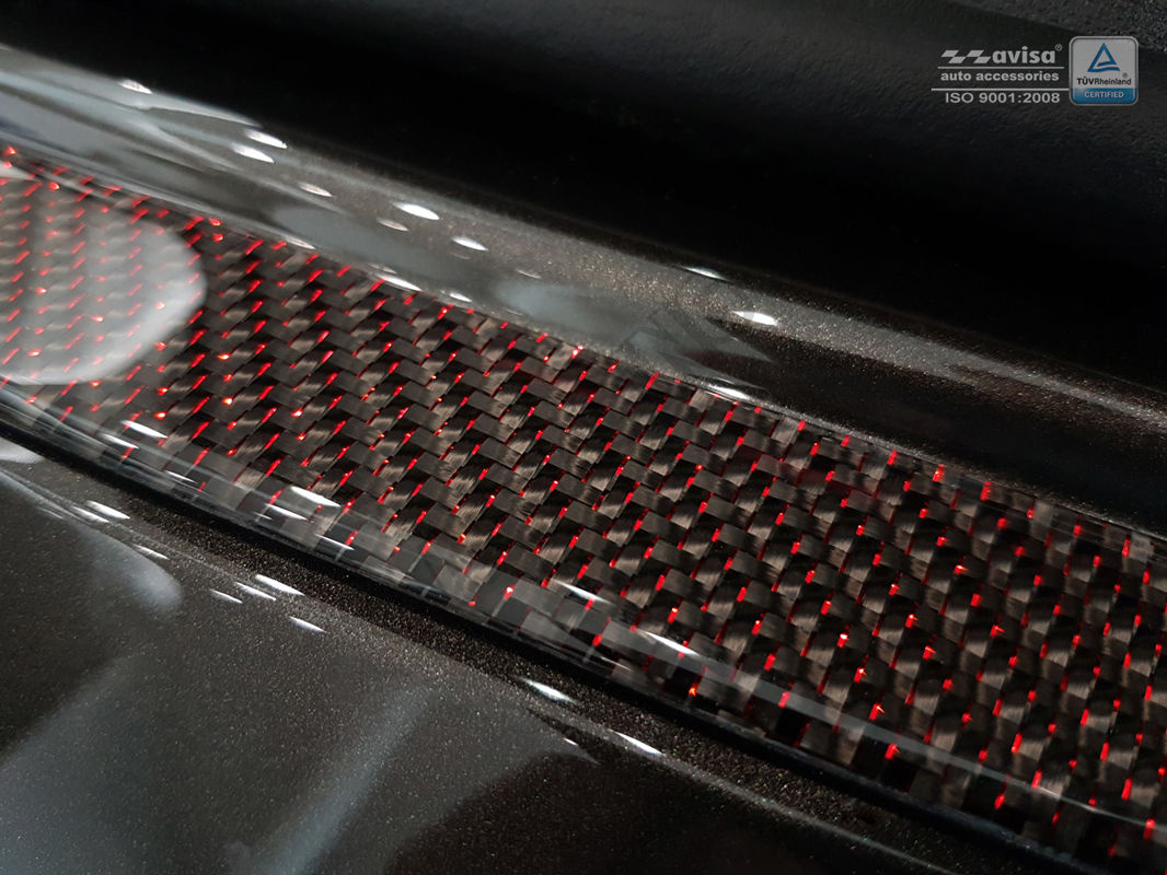 Tento carbon kryt představuje nejnovější kolekci ochrany nárazníku. Pásky jsou vyrobeny z původního uhlíkového vlákna z uhlíkových vláken. Uhlíková struktura dává pásům vysokou odolnost proti mechanickému a chemickému poškození. Naše uhlíkové pásy jsou dodatečně vyztuženy kvalitní pryskyřicí, která dodává lesk a exkluzivitu.