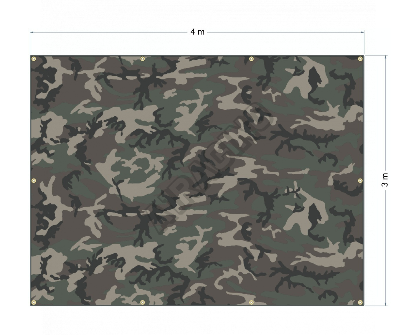 Lehká celta v lesní kamufláži s rozměry 3 x 4 m.