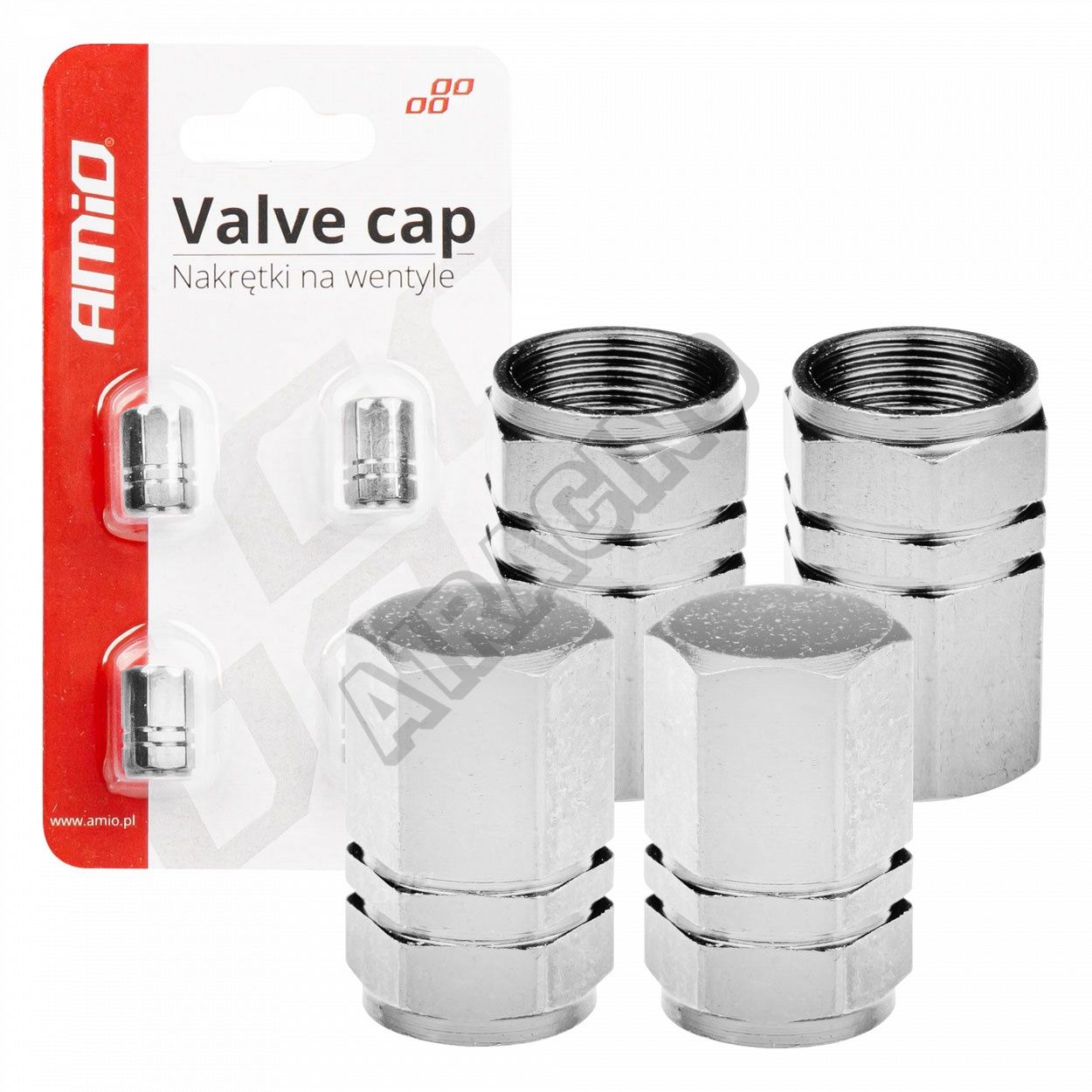 Sada 4 hliníkových čepiček ventilků. Univerzální, vhodný pro všechny ventily.