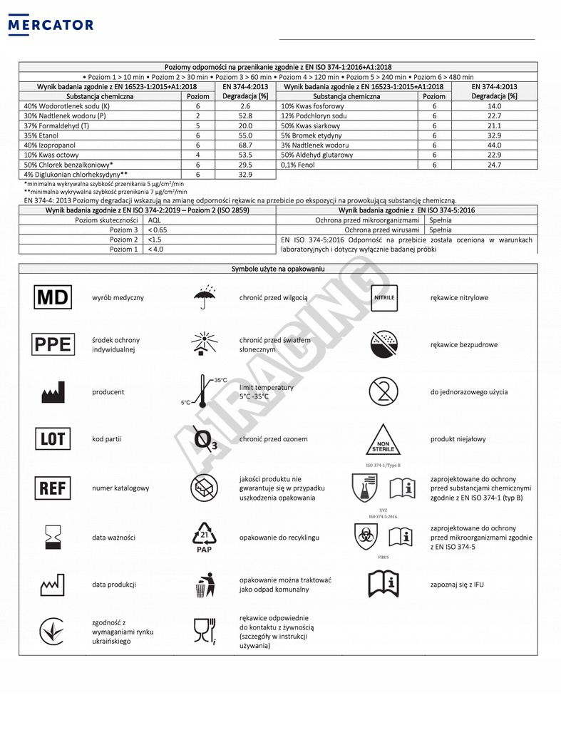 - EN 374-2 ochrana před mikroorganismy – metodologie stanovení odolnosti proti prosakování