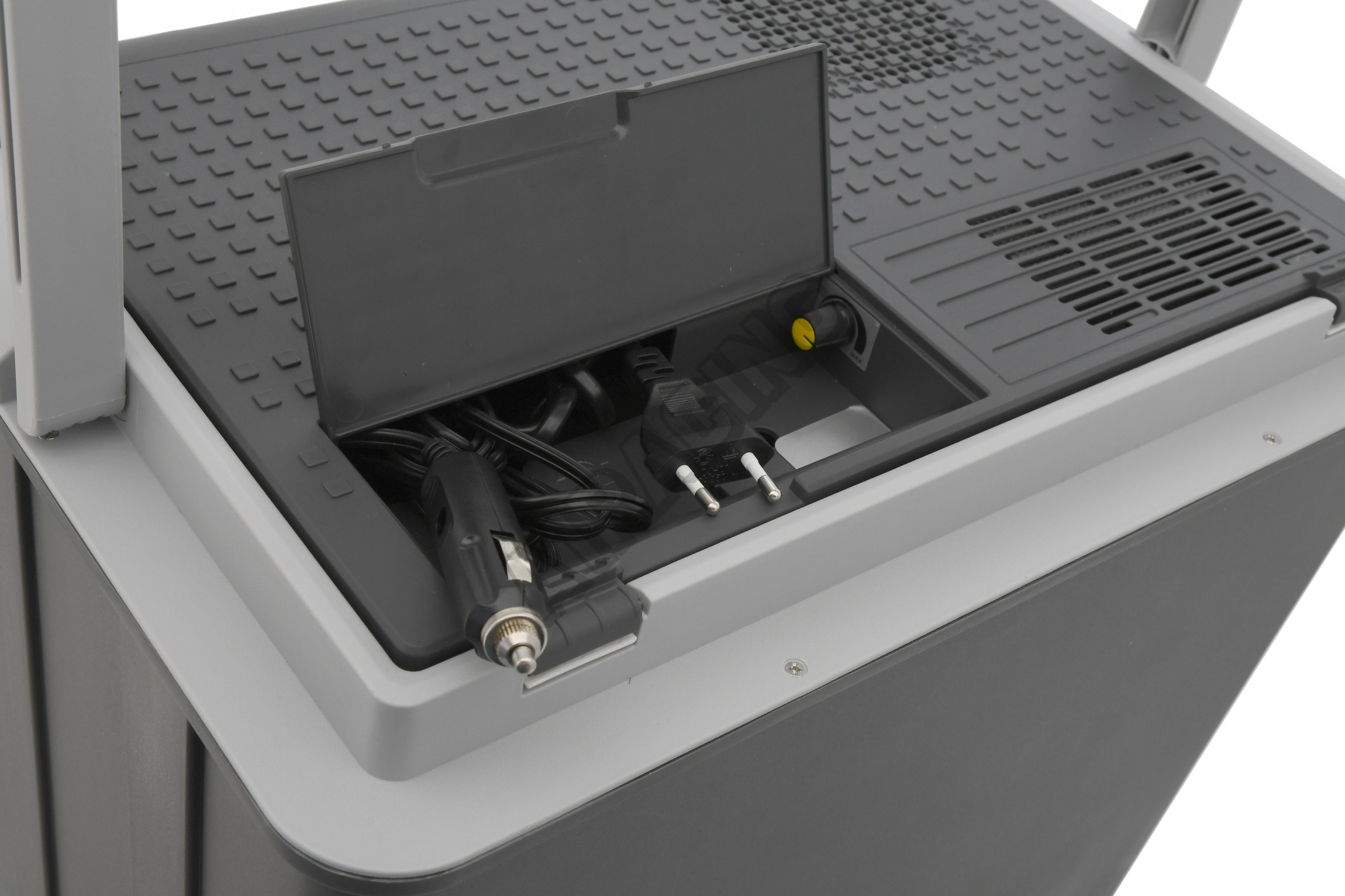 Při připojení do zásuvky 230 V lze otočným ovladačem nastavit požadovanou intenzitu chlazení (ovladač je umístěn ve schránce s kabely), čímž lze významně ušetřit spotřebu energie..