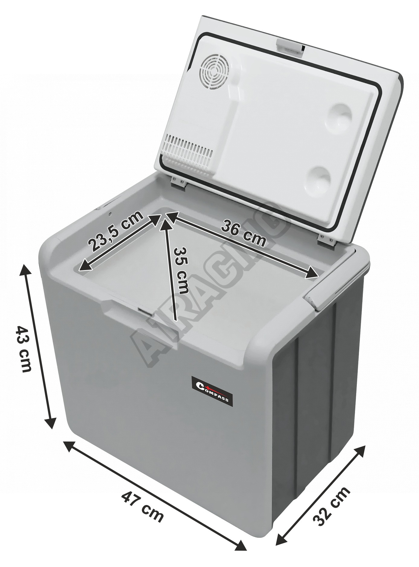 Vnitřní objem 30 litrů pojme velké množství potravin. Díky vybrání ve víku lze do chladicího boxu pohodlně umístit i vyšší lahve s nápoji. Chladicí box je velmi snadno přenosný, je vybaven praktickou rukojetí pro snadné přenášení.