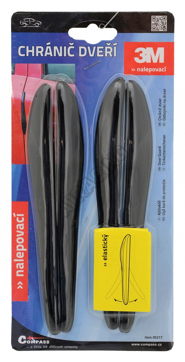 Pryžový chránič dveří se samolepící fólií 3M. Ochrání hrany dveří automobilu před poškozením laku při otevírání dveří (např. vedle zdi atp.). Určeno k nalepení na okraj dveří automobilu. Chránič je pružný, díky tomu jej lze snadno nalepit i na mírně zakřivené dveře.