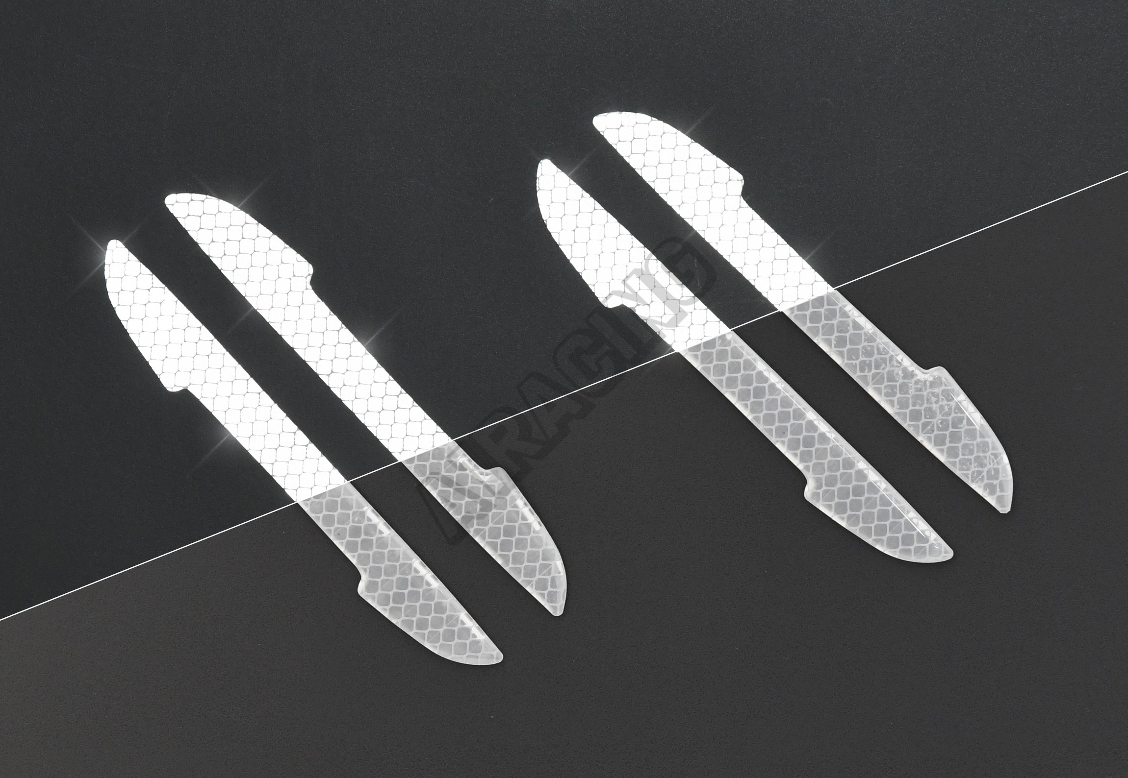 Chránič dveří s reflexními vlastnostmi se silnou lepící částí a odolným povrchem. Samolepka je vhod