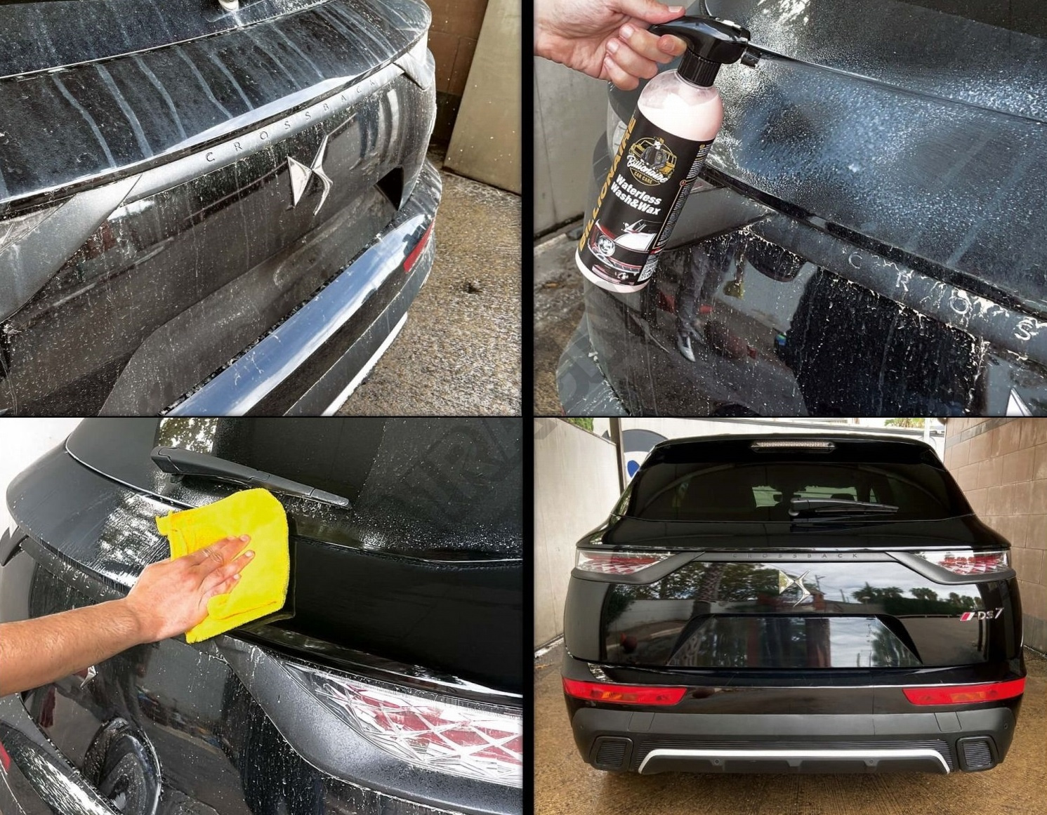 ČIŠTĚNÍ BEZ VODY: Náš speciálně navržený přípravek umožňuje kompletně umýt vozidlo včetně kol a pneumatik bez nutnosti použití vody. Užijte si broskvové aroma, zatímco odstraňujeme nečistoty.