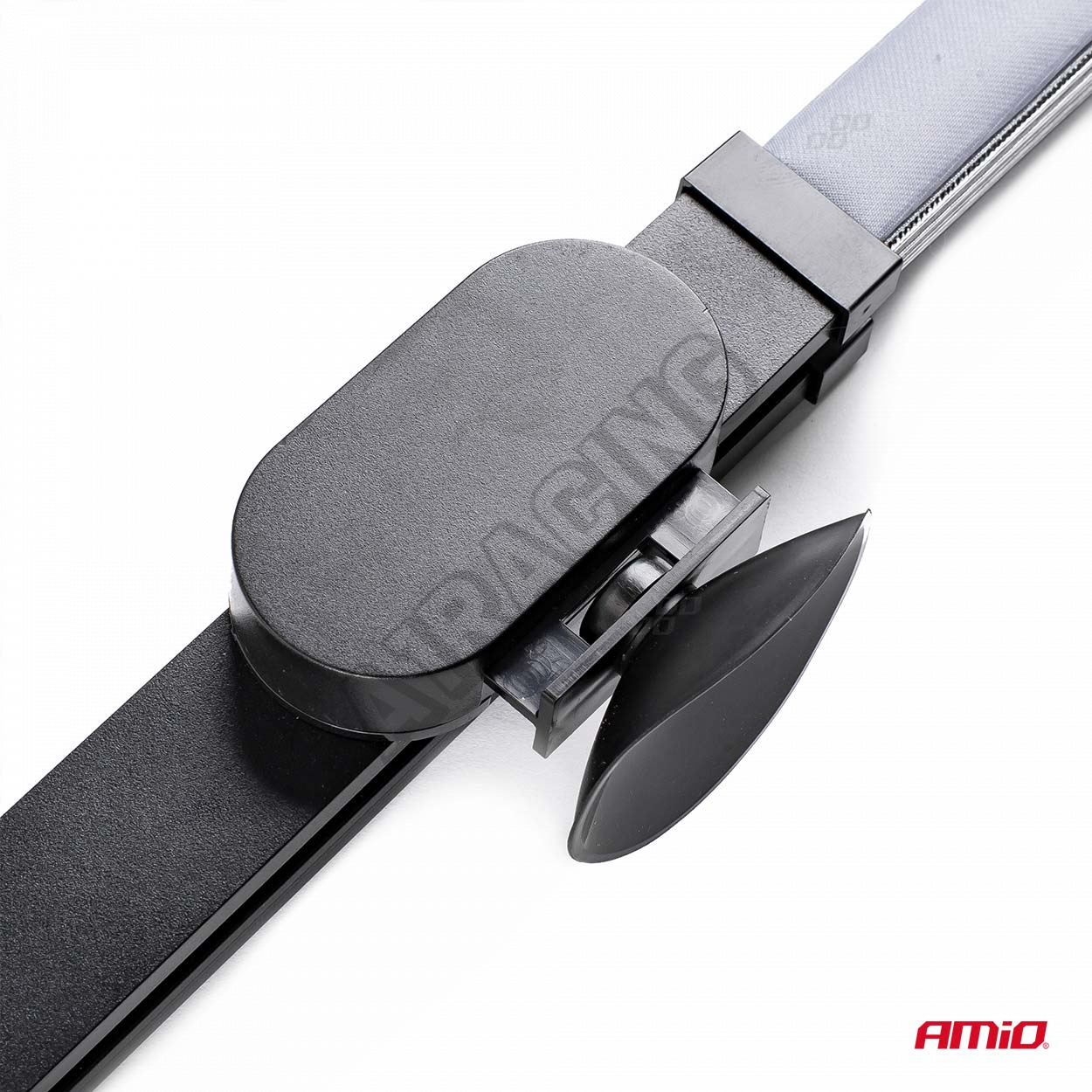 K montáži stačí připevnit ji pomocí přísavek přiložených v sadě na jedné straně, protáhnout a poté upevnit stejným způsobem na druhé straně.
