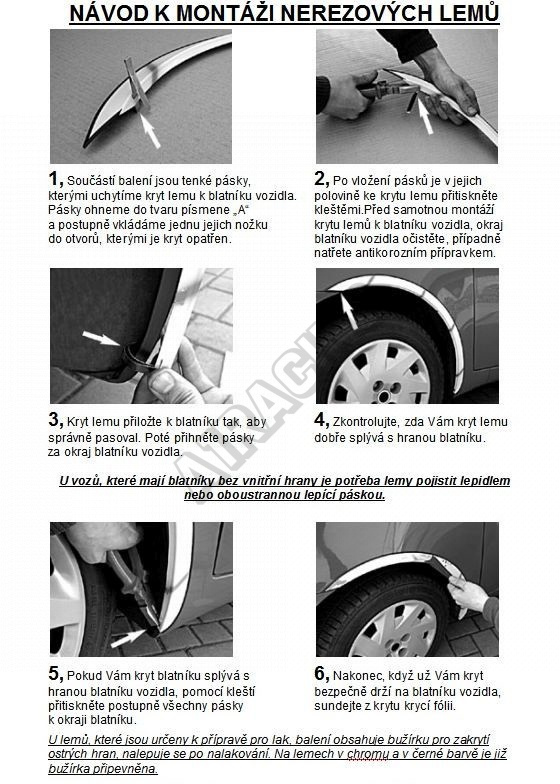 Lemy blatniku Dacia Duster jsou vyrobeny z kvalitního materiálu - nerezové oceli. Do poznámky před ukončením objednavky uveďte variantu povrchu, kterou si přejete - černé matné, chromované nebo lemy připravené pro nalakování. Uveďte také rok výroby Vašeho vozu.