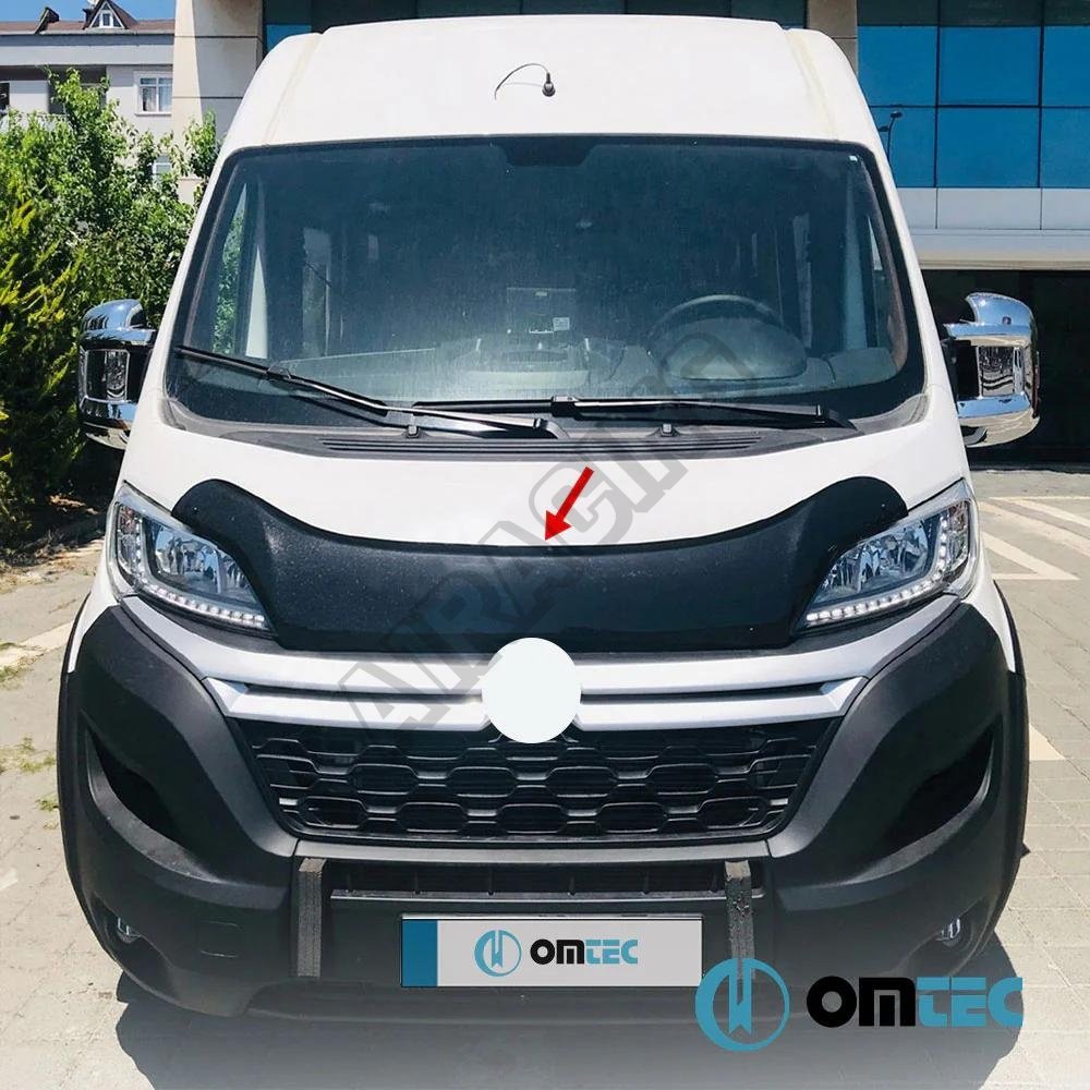 Pozor : Nic se nemusí vrtat. Vše se instaluje na původní uchycení z vnitřní strany kapoty. V horní části je pruhledná fólie, která před použitím se sundá dolů.