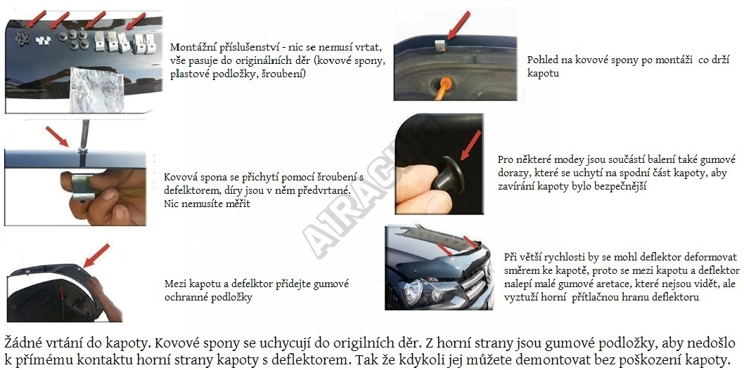 - upevnění se provádí na originální uchycení v kapotě, nikde se nemusí vrtat !!!