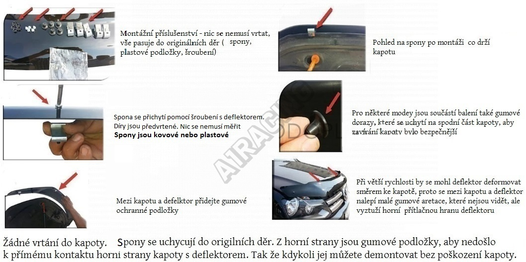 - upevnění se provádí na originální uchycení v kapotě, nikde se nemusí vrtat !!!