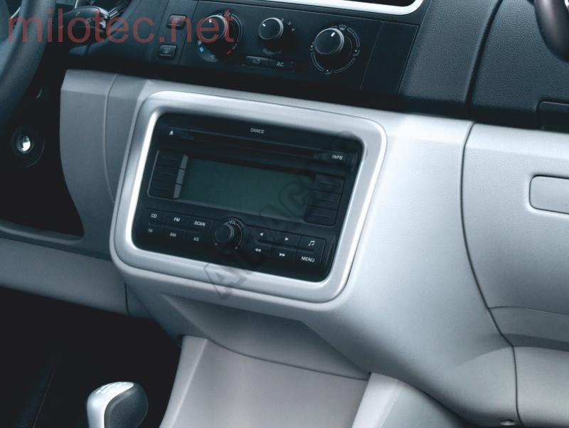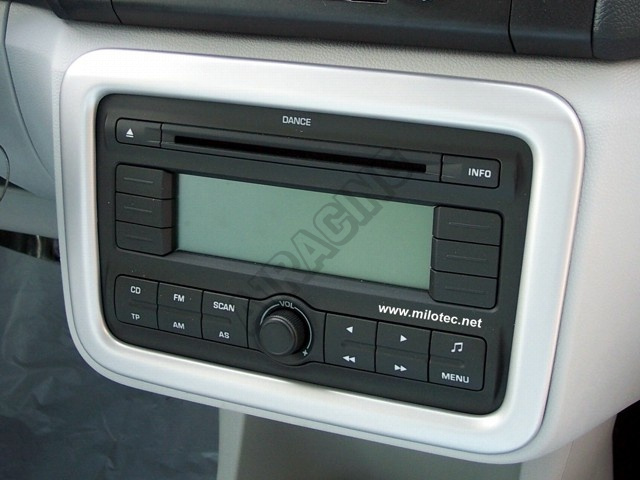 Interiérový dekorativní rámeček středové konzole kolem rádia je vyroben ze stříbrného matného ABS.