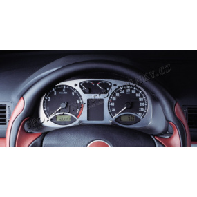 Sedmidílná sada interiérových dekorativních lišt pro palubní desku a výplně dveří je vyrobena ze stříbrného matného ABS. Montáž je realizována lepením.