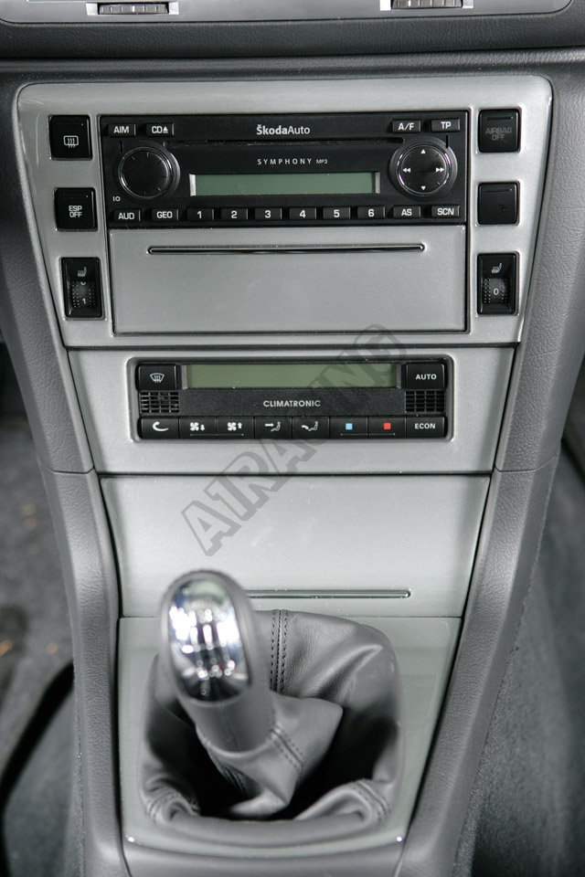 Dekor středového panelu - exkluzívní, stříbrný, Škoda Superb mechanická klíma Vyrobeno ze speciální
