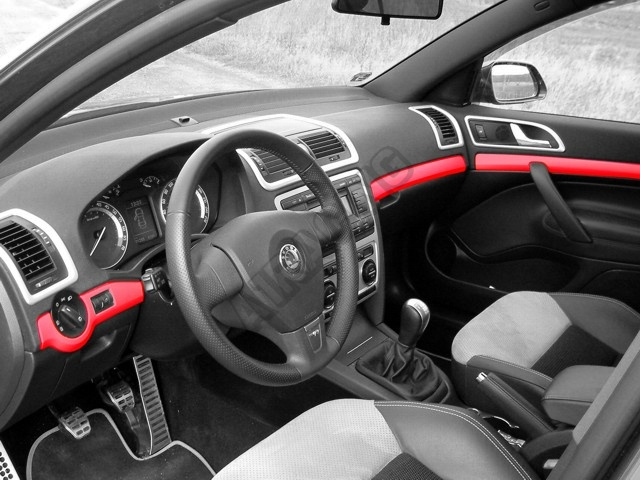 Recenze k produktu Dekory interiéru, sada 1 (lišty palubní desky a dveří 7 ks) ABS-stříbrný matný, Škoda Octavia II, Škoda Octavia II Facelift