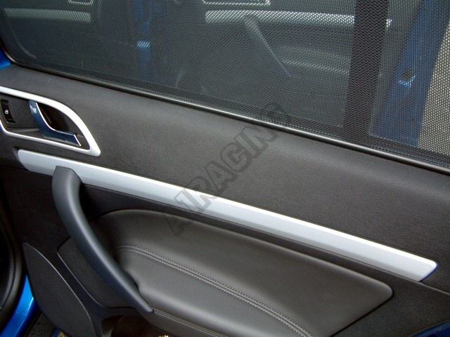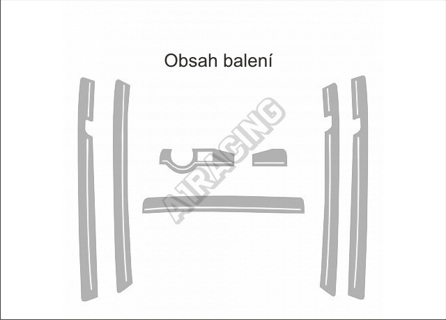 Sedmidílná sada interiérových dekorativních lišt pro palubní desku a výplně dveří je vyrobena ze stříbrného matného ABS. Montáž je realizována lepením.