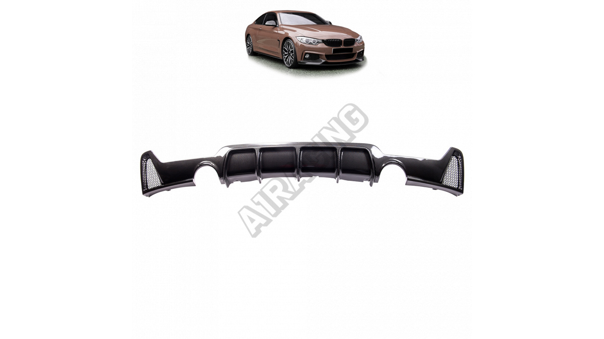 Zadní difuzor Carbon Look je vynikajícím doplňkem pro vaše BMW 4 (F32) Coupe (F33) Cabrio (F36) Gran Coupe vyráběné od roku 2013. Díky svému unikátnímu vzhledu dodává automobilu sportovní charakter.