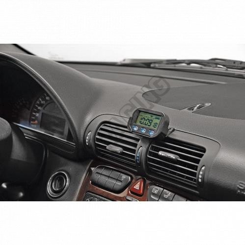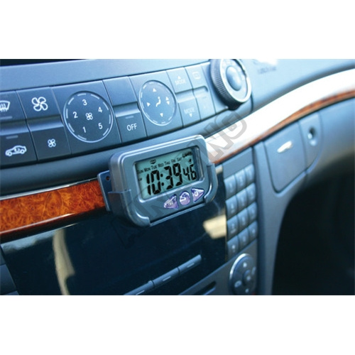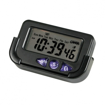 LCD křemenné digitální hodiny. Hodiny, minuty, sekundy, datum, měsíc, pracovní dny, alarm a chronometr. Displej s velkými písmeny pro snadné čtení. Držák s nastavitelným úhlem a lepicí základnou. Baterie jsou součástí dodávky. Součástí je také spodní stojanek s podlepením, který se nemusí požít a podlepení se dá přímo na spodní stranu hodin a kdekoli nalepí v interiéru.