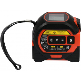 Svinovací metr s ocelovou páskou 5 m x 19 mm a laserovým dálkoměrem s rozsahem měření 0,2 až 40 m Má také funkční křížový laser, který se zapne po krátkém stisku spínače (cca 3 sec.).