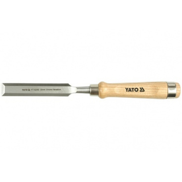 Kvalitní dláto Yato šíře 15 mm s dřevěnou rukojetí. Dláto je vyrobeno z kvalitní chromvanadiové slitiny oceli CrV60 a vytvrzeno na tvrdost HRC56-62. Rukojeť je opatřena kovovou tulejí.