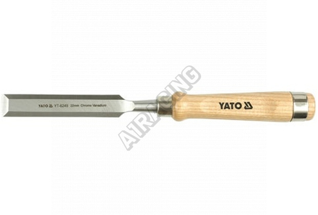 Kvalitní dláto Yato šíře 22 mm s dřevěnou rukojetí. Dláto je vyrobeno z kvalitní chromvanadiové slitiny oceli CrV60 a vytvrzeno na tvrdost HRC56-62. Rukojeť je opatřena kovovou tulejí.