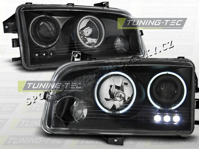 DODGE CHARGER LX 2006-10 PŘEDNÍ ČÍRÁ SVĚTLA ANGEL EYES CCFL BLACK