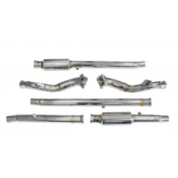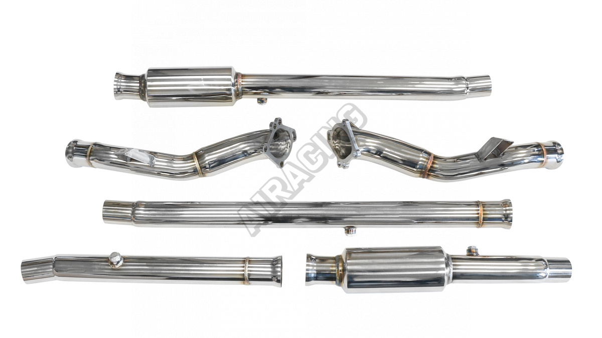 Ostatni element wydechu zawiera zwężenie dopasowujące downpipe do seryjnego wydechu. Po odcięciu tego elementu i połączeniu go z większym wydechem, uzyskujemy pełną średnicę na całej długości.