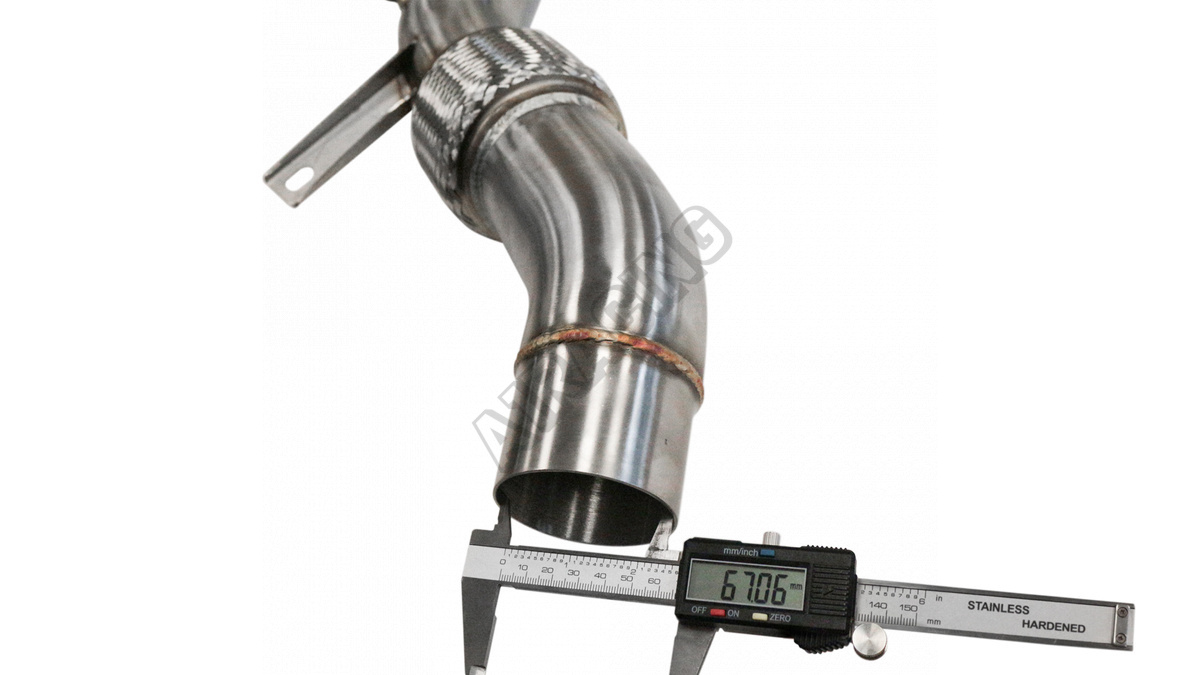 Downpipe firmy TurboWorks, vyrobený z nerezové oceli. Downpipe odstraňuje filtr DPF, může být vyžado