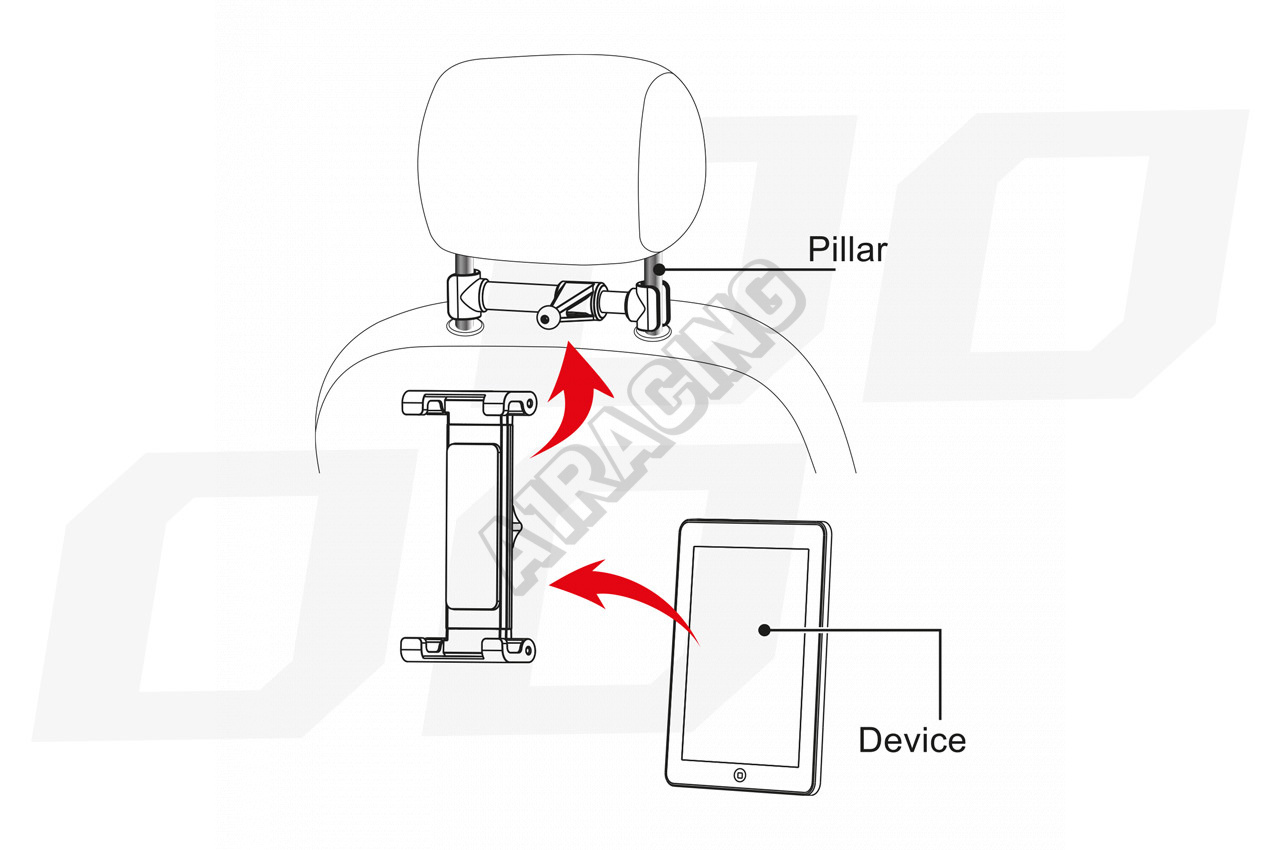 Univerzální konstrukce pasuje k většině tabletů a opěrek hlavy, a nastavitelný mechanismus umožňuje přizpůsobení úhlu sklonu a rozestupu, což zaručuje pohodlný výhled z každé pozice.