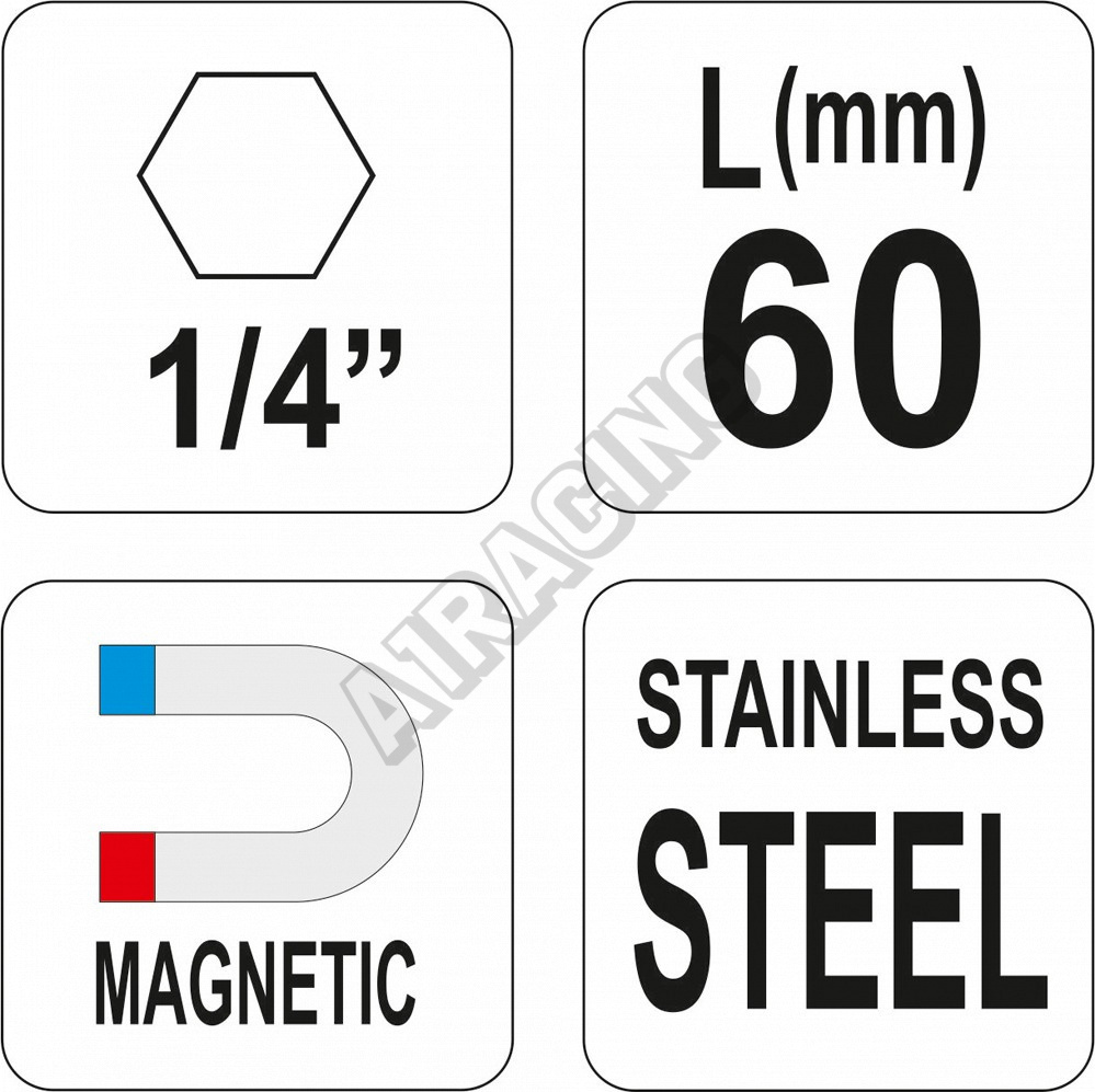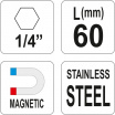 Klasický držák bitů 1/4" s délkou stopky 28 mm. Díky silnému magnetu spolehlivě drží bity a zároveň