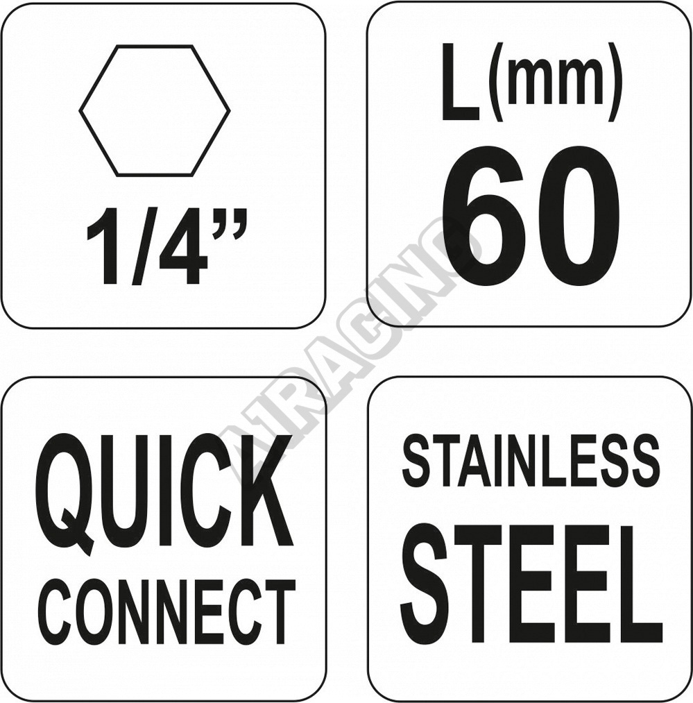 Celkové rozměry držáku z nerezové oceli, jsou 60 mm a stopka 1/4".