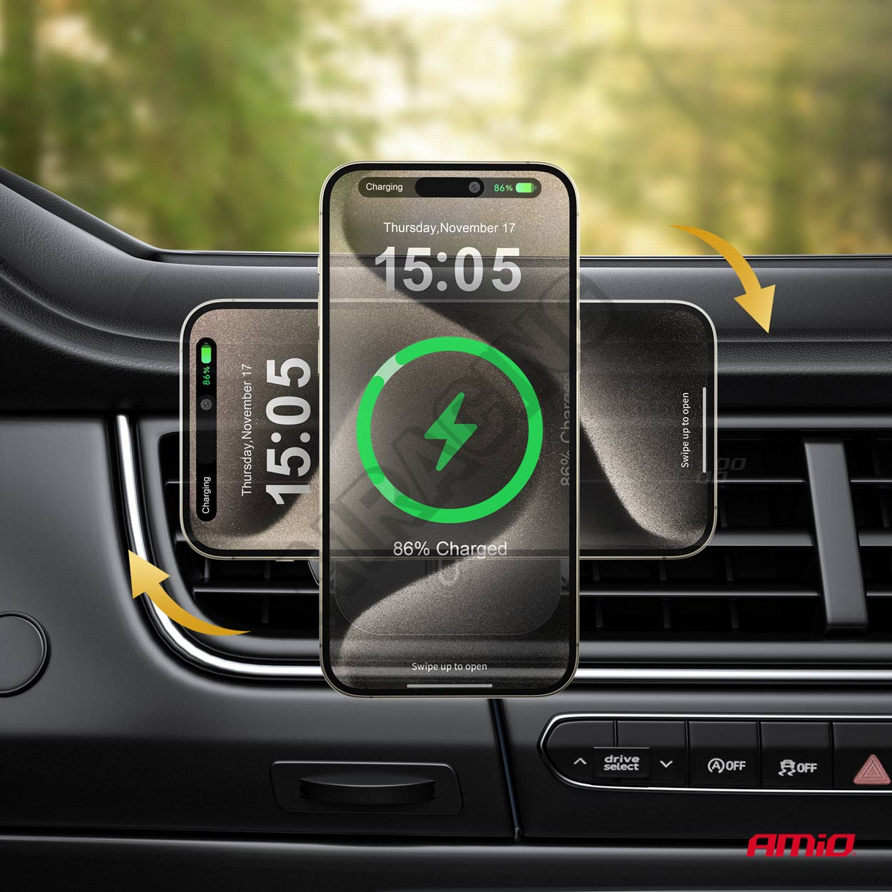 Inovativní a elegantní držák firmy AMiO s indukční nabíječkou 15W. Tento pokročilý držák má nastavit