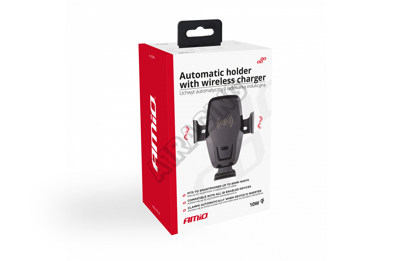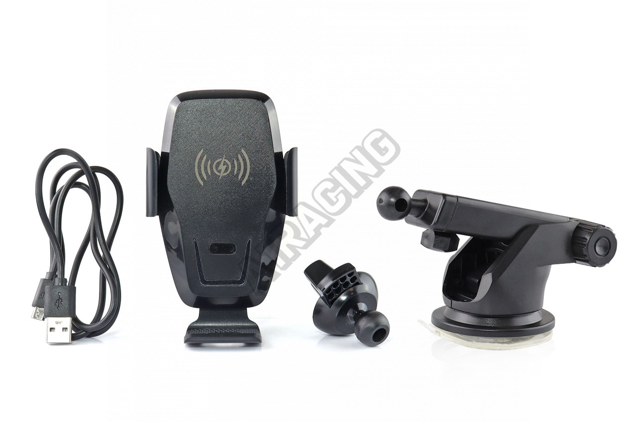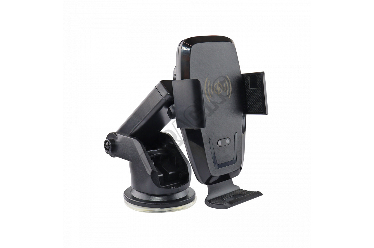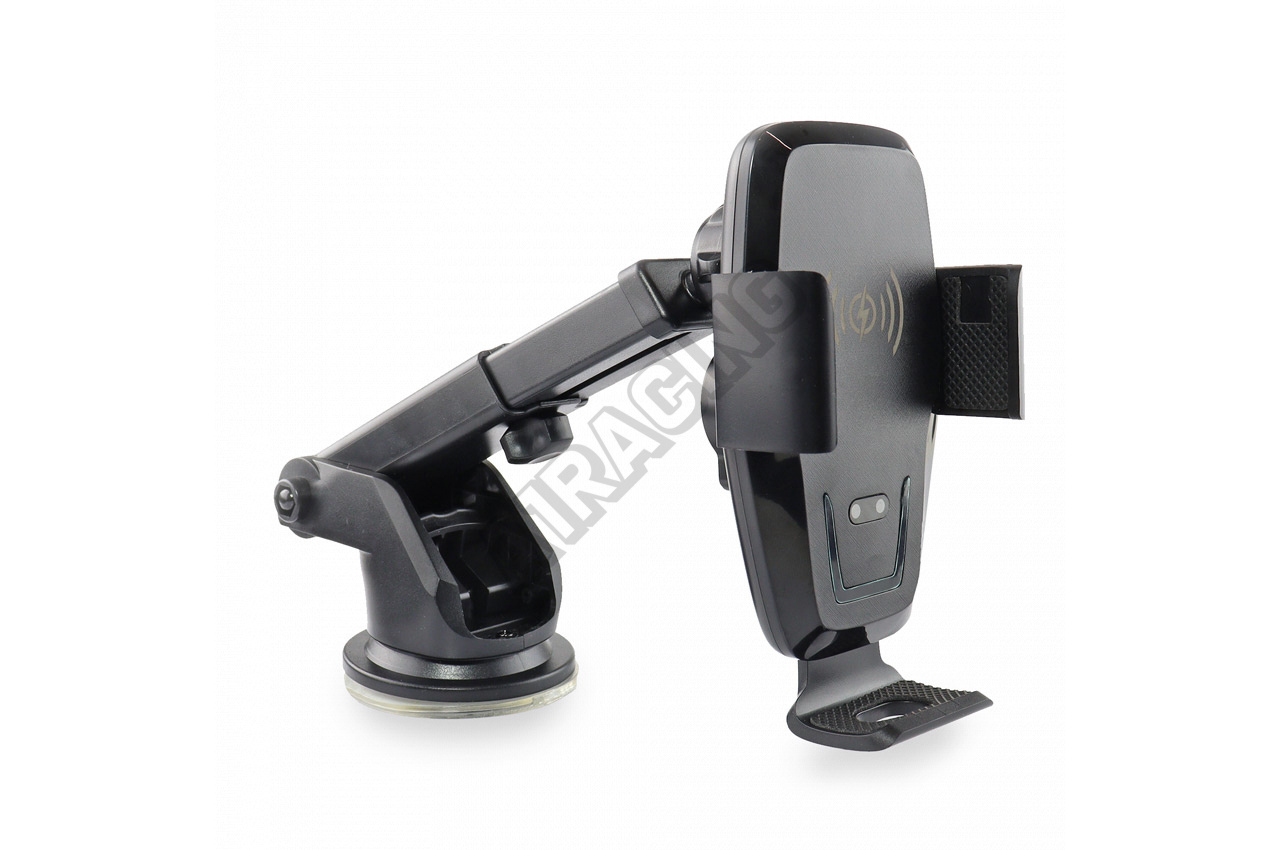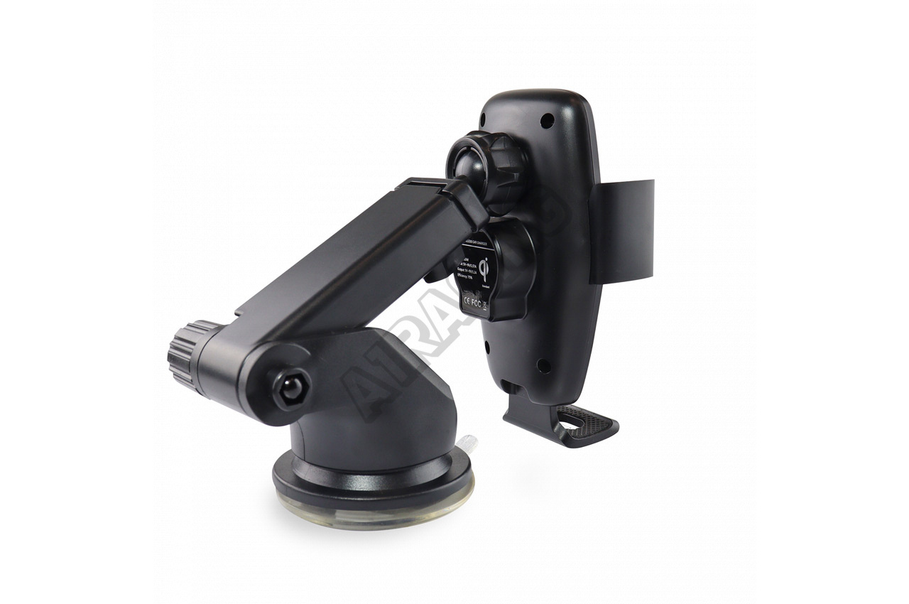Automaticky uzamykatelný držák s přibližovacím senzorem a silnou indukční nabíječkou. Možnost montáže na sklo pomocí přiloženého nastavitelného ramene s přísavkou.
