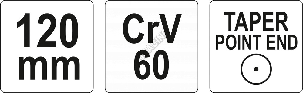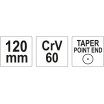Celková délka 120 mm, rukojeť s šestihranným profilem 9,4 mm. Vyrobeno ze slitiny ocelí CrV55,CrV60 a CrMo.