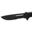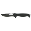 Rukojeť je osazena ergonomicky tvarovanými střenkami černé barvy, nůž perfektně padne do ruky a je opatřen zarážkou chránící nositele před pořezáním.