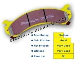 - anglická firma EBC je specialistou výhradně na výrobu brzdových systémů a to jak pro auta, motorky, nebo motokáry atd. , sportovní kotouče jsou ve dvojím provedení a to se zlatavým a černým horním nástřikem pro dlouhou životnost, kde desky sjedou jen třecí plochu a ostatní část kotouče je stále chráněna, kotouče jsou drážkované a děrované, které není úplné, díky tomu je kotouč pevnější, dobře odvádí nečistoty a dostatečně se i chladí, z desek si můžete vybrat základní černé provedení až po závodní žluté a modré, rozdělení najdete v galerii, kde je teplotní graf s možnostmi použití,
