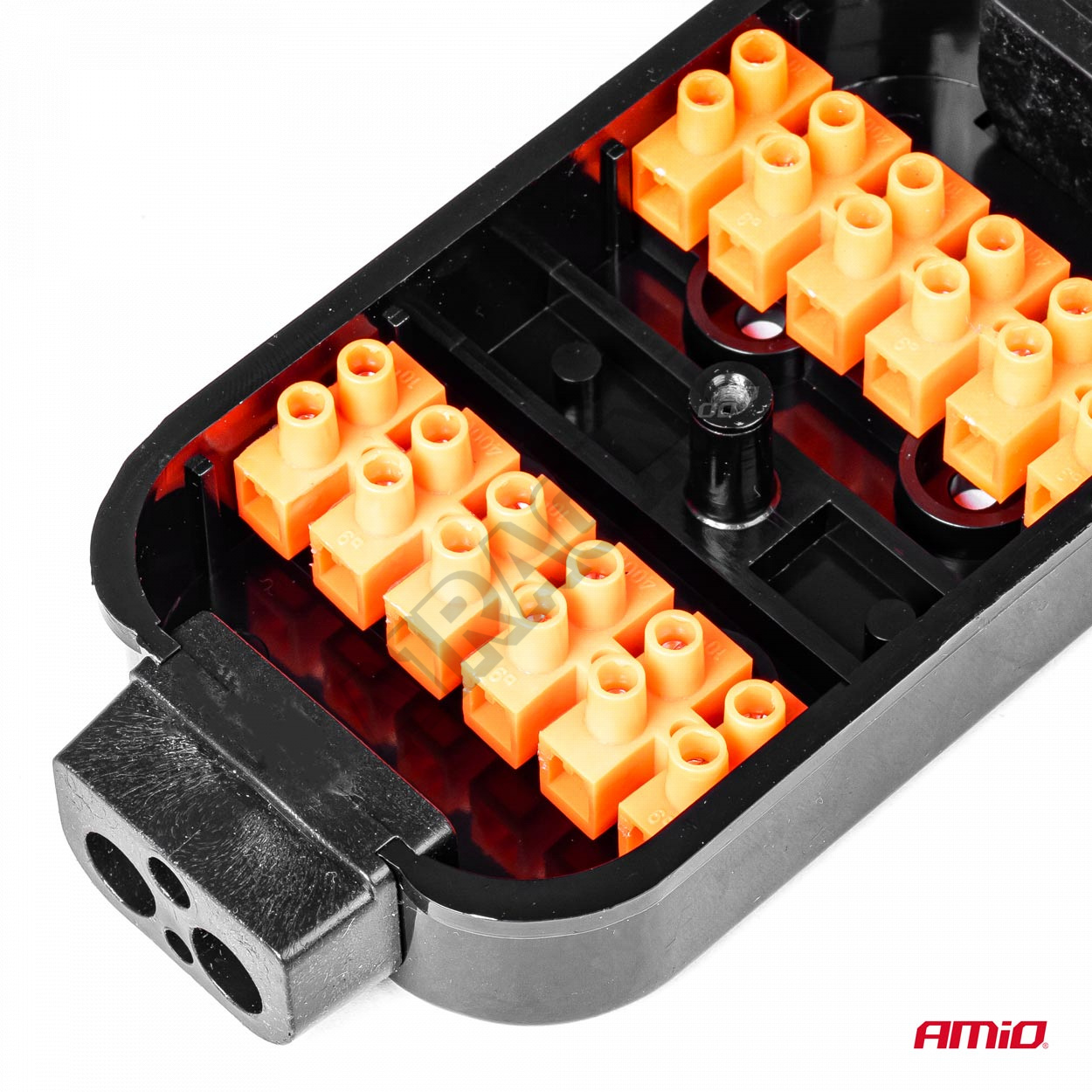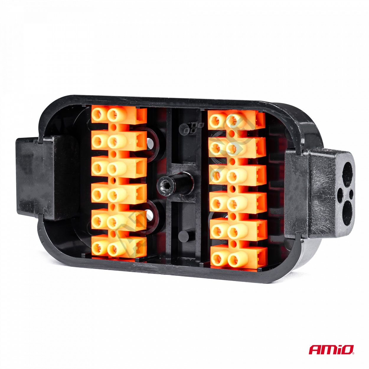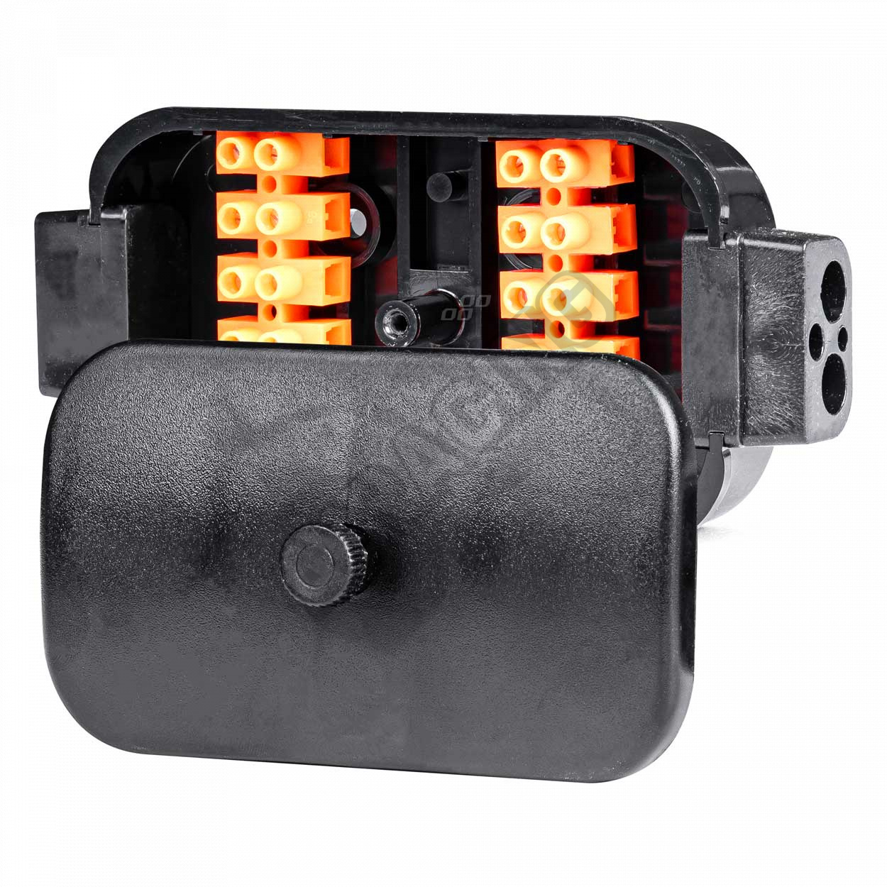 Krabice elektrické instalace přívěsu vybavená svorkovnicí. Hermetická krabice - šroubovací.