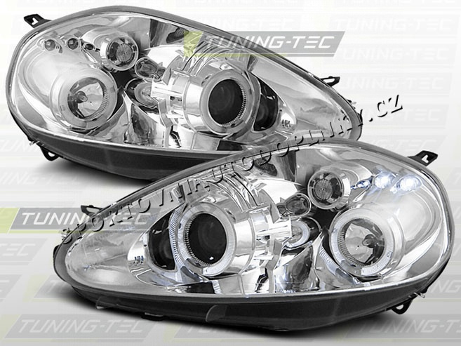FIAT GRANDE PUNTO 2005-09 PŘEDNÍ ČÍRÁ SVĚTLA ANGEL EYES CHROM
