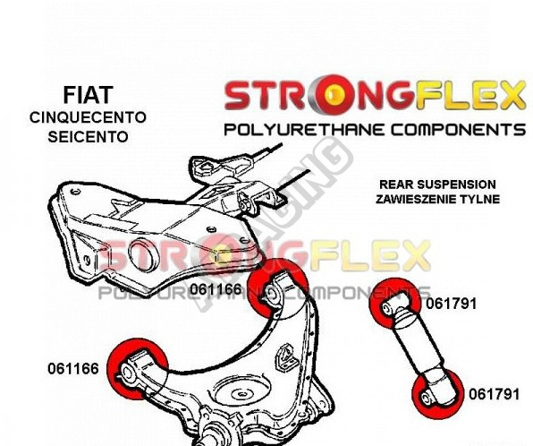 Fiat Seicento 1998-08 StrongFlex (tvrdost 80ShA) kompletní sestava silentbloků na celé auto obsahuje :