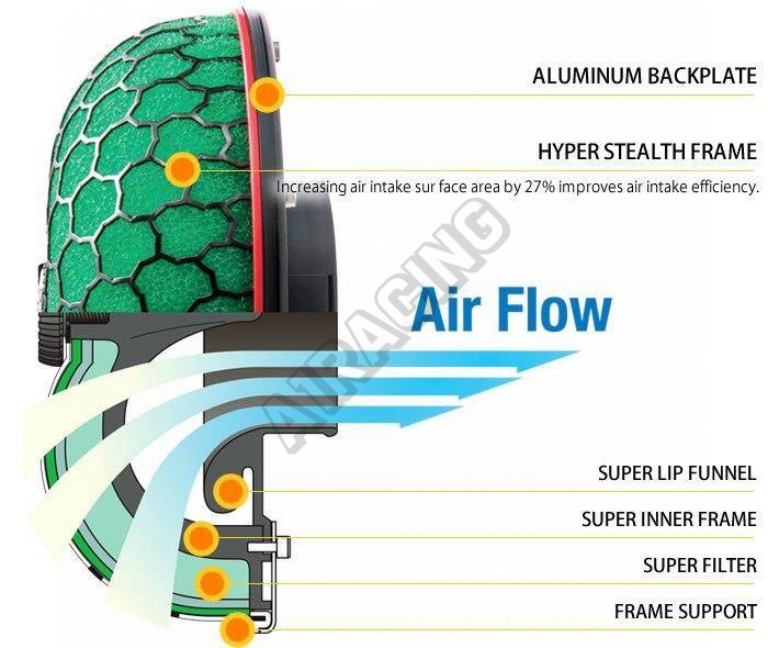 Vyznačuje se mimo jiné: snadnou montáží díky gumové manžetě s upínací sponou, zlepšuje přívod vzduchu, zajišťuje nárůst výkonu a zvyšuje točivý moment.