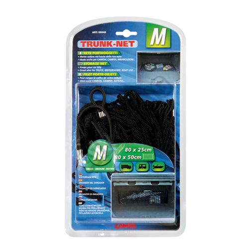 Tato kvalitní síť italského výrobce Lampa je určena do kufru automobilu. Velikost samotné sítě je 80x25 cm ve smrštěném stavu, kde v rozích lze samotné uchycovací oka natáhnout do uchycovacích ok automobilu.