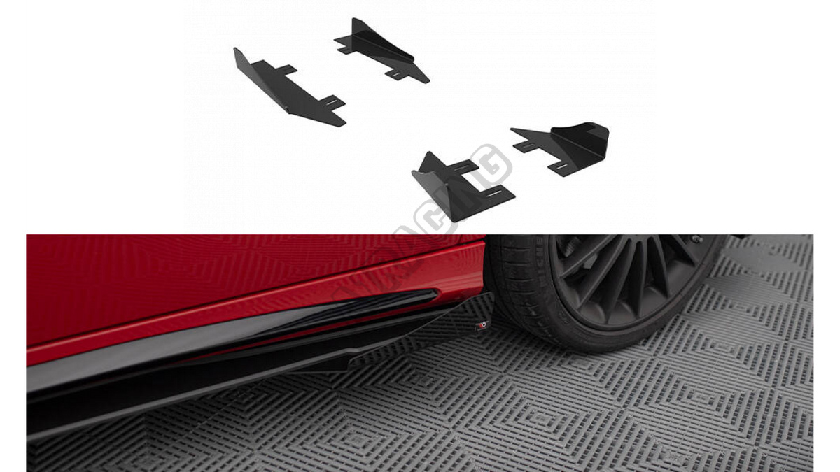 Boczne flapsy wyprodukowane przez Maxton Design przeznaczone do zamontowania w modelu Mercedes-Benz A 45 AMG W176 Facelift to części tuningowe, które zamontowane w samochodzie podkreślą wyjątkowo nowoczesny i sportowy wygląd samochodu, a także jego oryginalny charakter. Flapsy boczne będą dość nowoczesnym elementem uzupełnienia innych części tuningowych dostępnych w asortymencie Maxton Design, ponieważ odznaczają się estetycznie frezowanymi krawędziami. Flapsy boczne od Maxton Design dostępne są w dekorze czarny mat, który podkreśli niezwykle elegancki charakter tuningu.