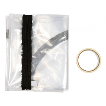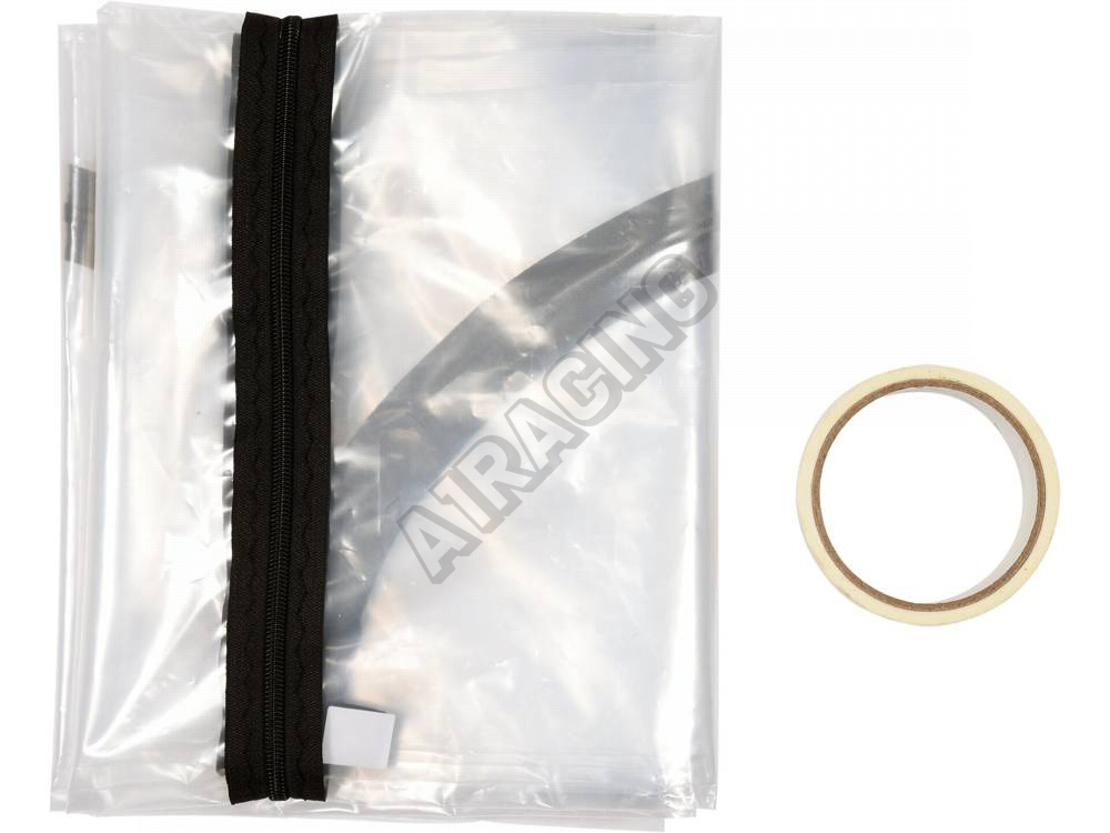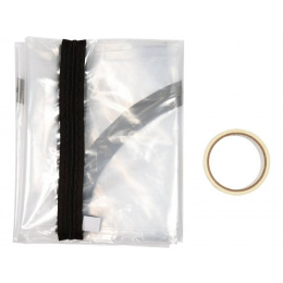Protiprachový kryt dveřních otvorů ze silné, bezbarvé, průhledné PE fólie. Otevírací část je ve tvaru U a otevírá se všitým zipem s jedním jezdcem. Fólie je upevněna lepicí páskou.